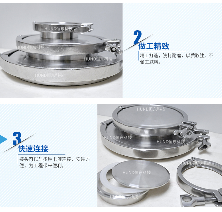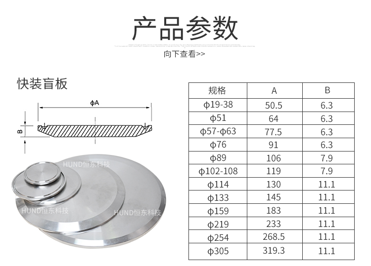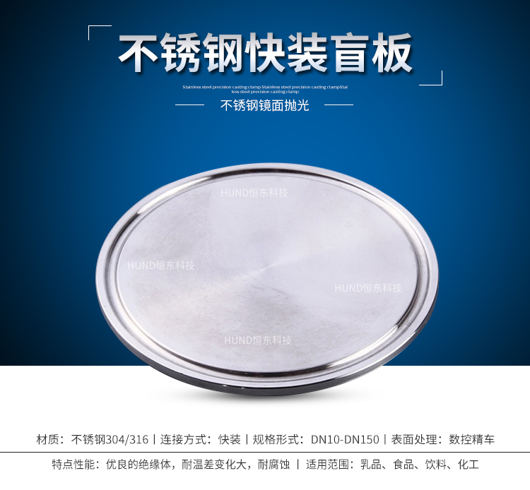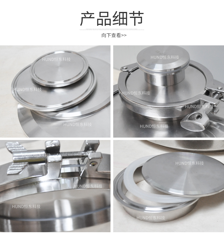 产品详情:产品称呼:夹钳盲板(卡箍+接头+盲板+封圈,是一套)。大小是管子的尺码,而不是夹钳的内径。连接方法:卡子(迅速安装)型。产品材质:不锈钢304材质。