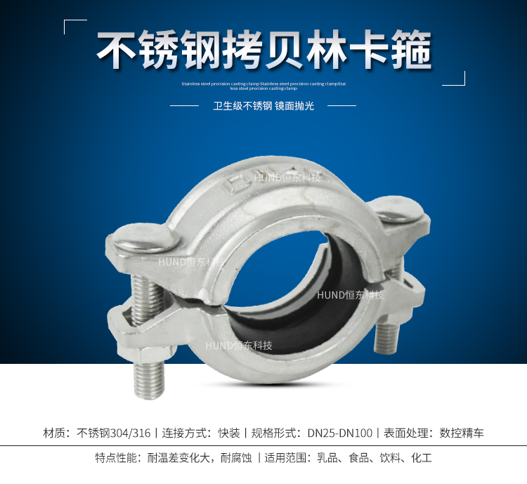 产品详情:恒东科技卡箍配件,由不锈钢制成,做工精细,品质卓著。恒东科技不锈钢卡箍配件可根据要求定做。恒东科技装置制造年份,不锈钢复制链接卡箍配件制造商。